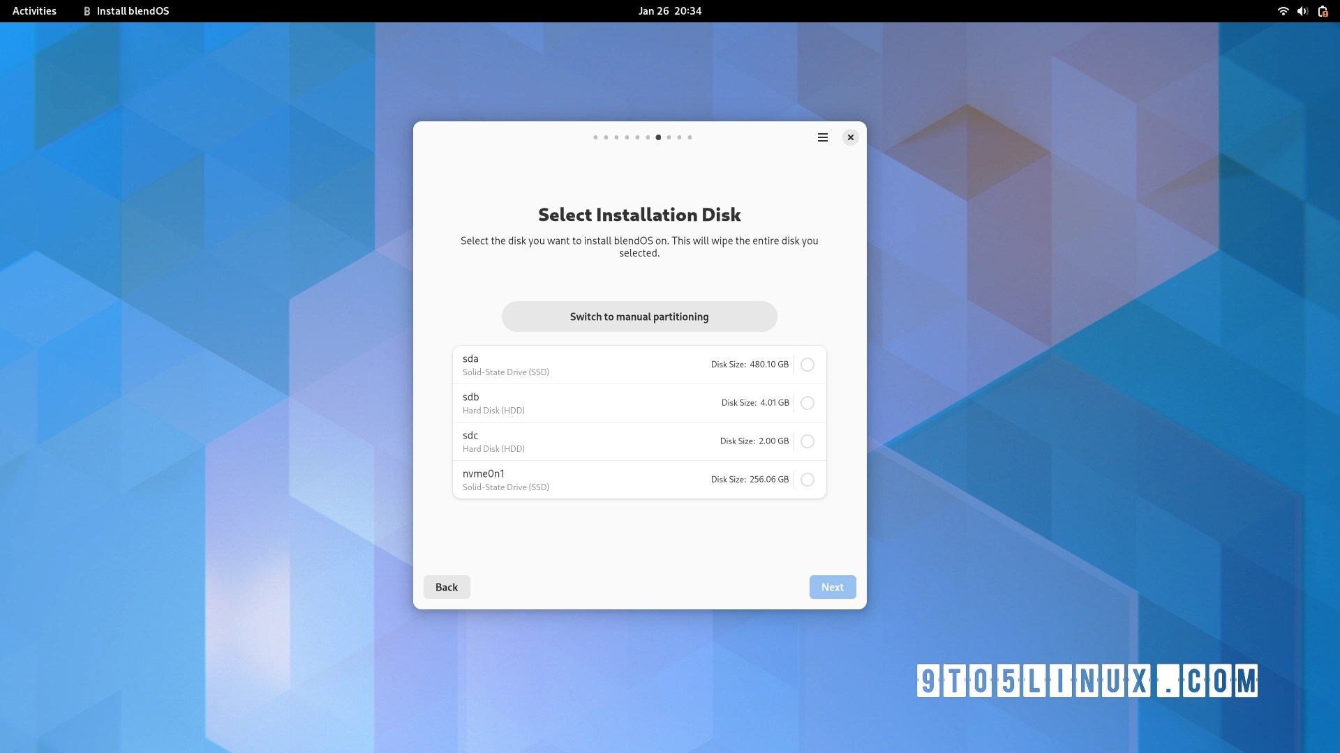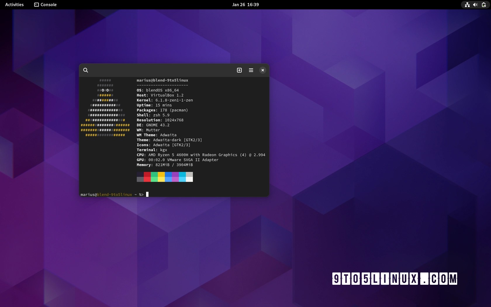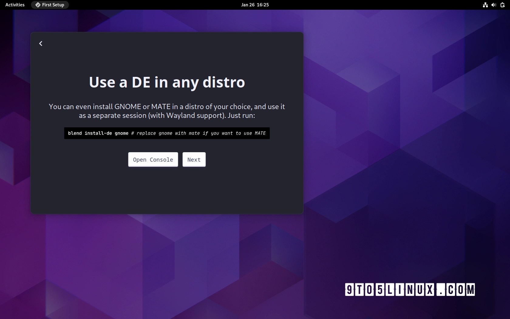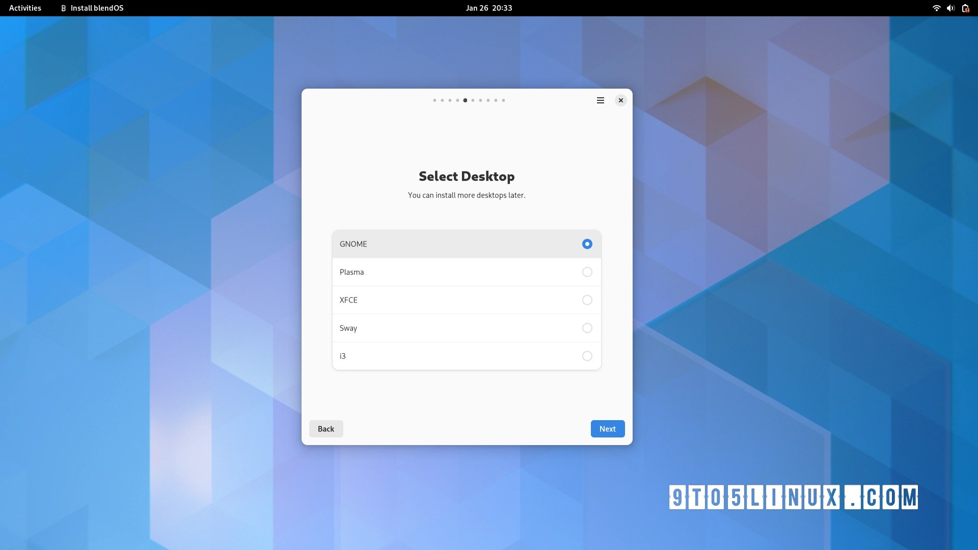 Even if it comes with the GNOME desktop by default on the live ISO image, blendOS will let you deploy a new installation with another popular desktop environment, such as KDE Plasma, MATE, or Xfce, or even window managers like Sway or i3.