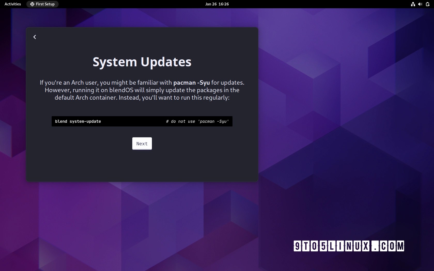 Another interesting thing about blendOS is that it even comes with its own package manager called blend which appears to work with multiple distributions. This can be used to, for example, update the system by running the blend system-update command.