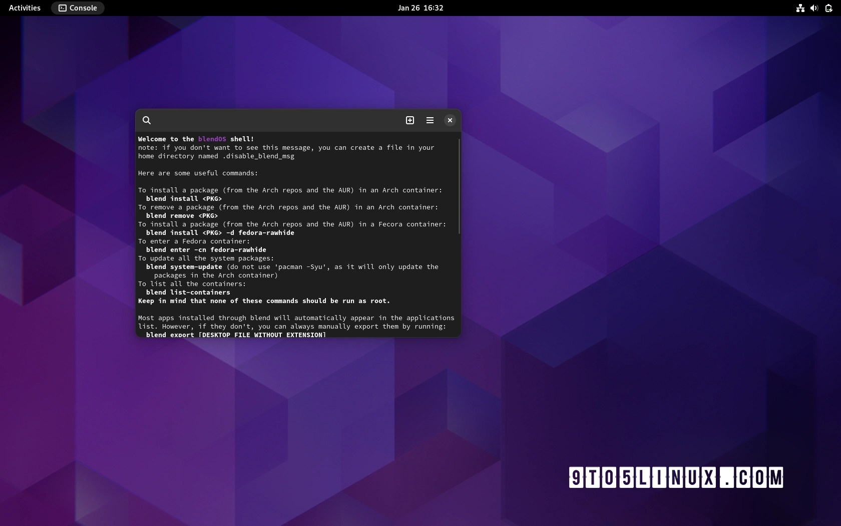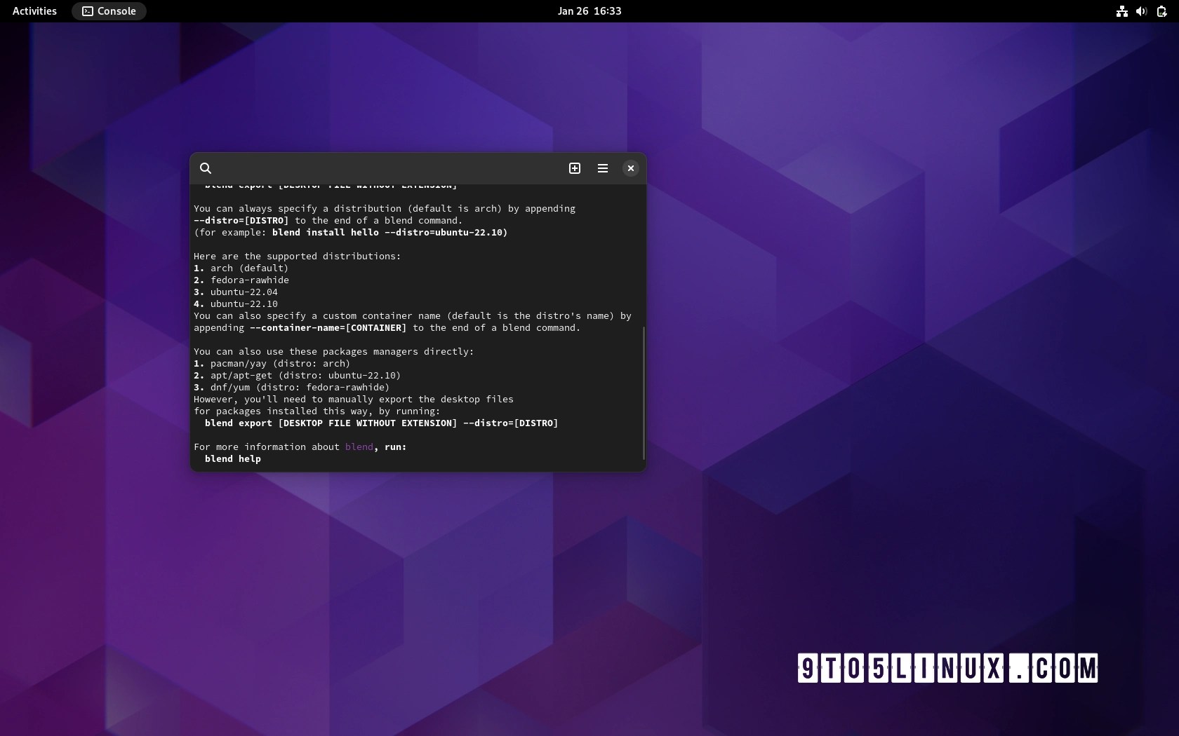 When using Fedora Linux’s or Ubuntu’s native package managers for the first time, the containers are created automatically. After that, you can use either blend, pacman, dnf, or apt in the same shell to install or remove packages, without any tricks.