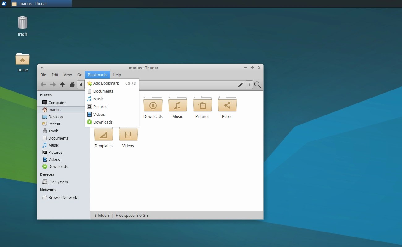 On top of that, Thunar gets a new, separate Bookmarks menu in order to keep the Go menu compact, a new info bar for the Trash folder with access to the Empty Trash and Restore functionality, improved management of setting or unsettling default apps for specific mime types, and the ability to arrange custom actions in cascading submenus.
