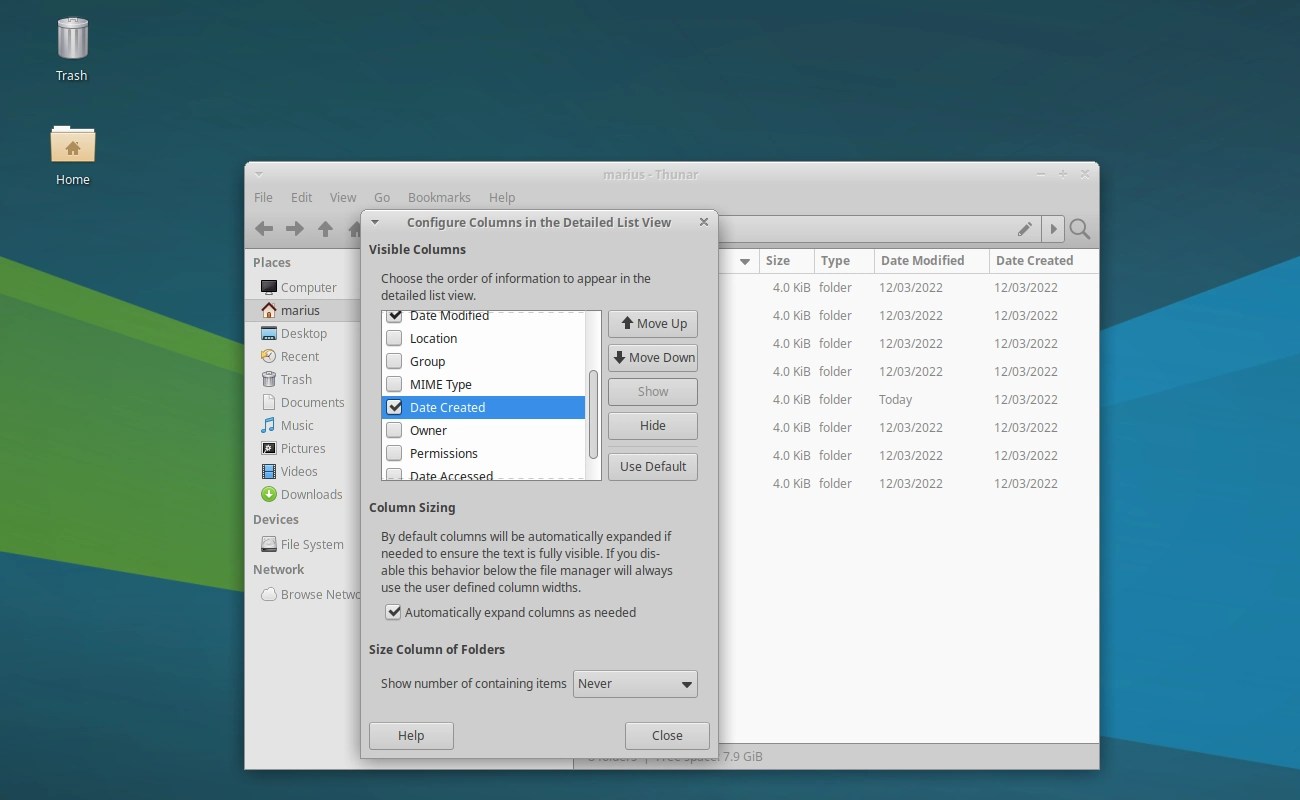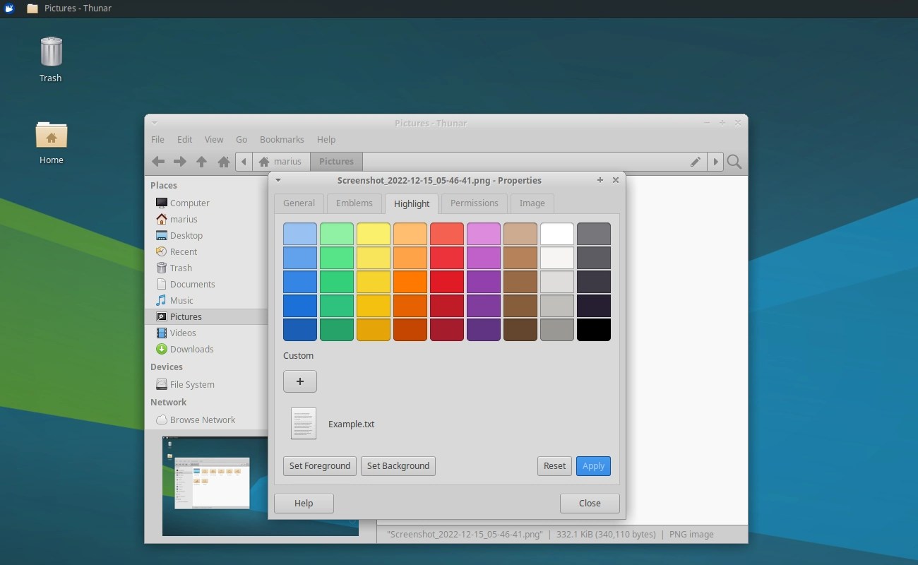 Xfce 4.18 also makes it possible to customize Thunar’s toolbar, status bar style, and custom actions, offers the ability for users to add a “file creation date” column to the List View, as well as to highlight the background and name of files using different colors, and lets you access recently used files in the side pane.